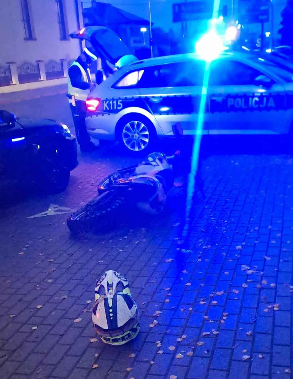 Jak dodaje, w trakcie próby ucieczki jeden z motocyklistów stopką pojazdu uszkodził drzwi oznakowanej Cupry należącej do policji, a następnie się przewrócił. Drugi zdołał uciec.