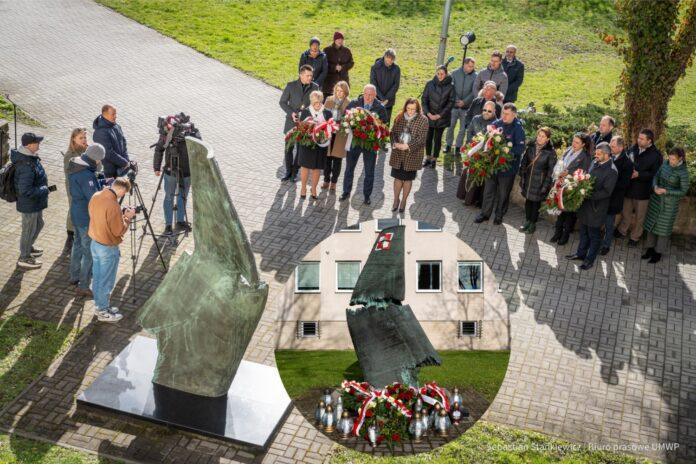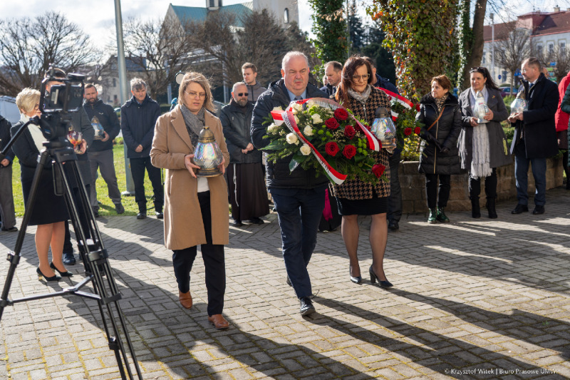 Kwiaty, a także znicze zostały złożone przez oficjeli przy pomniku w kształcie załamanego skrzydła, dokładnie o godz. 8:41 (właśnie wtedy 15 lat temu rozbił się polski samolot w Smoleńsku). Na nim znajdują się nazwiska prezydenta RP Lecha Kaczyńskiego, jego małżonki Marii Kaczyńskiej, a także ostatniego prezydent RP na uchodźstwie Ryszarda Kaczorowskiego. Ponadto są tam nazwiska sześciu ofiar katastrofy, których losy były związane z naszym regionem.