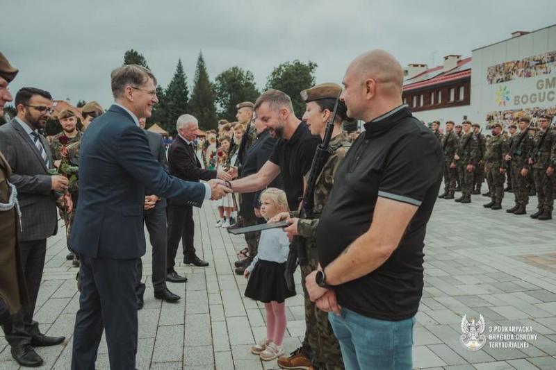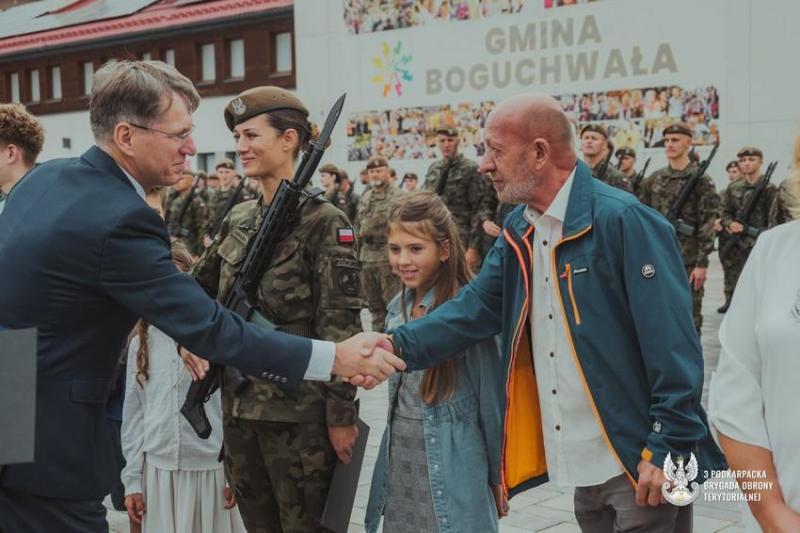 Na Rynku w Boguchwale, w niedzielę, 31 sierpnia, 126 ochotników wypowiedziało słowa roty i złożyło uroczystą przysięgę wojskową na sztandar 3 Podkarpackiej Brygady Obrony Terytorialnej. Zakończyli tym samym 16-dniowe szkolenie podstawowe, jakie było realizowane w ramach 7. edycji ogólnopolskiego projektu „Wakacje z WOT”. Co ciekawe, była to już 53. przysięga wojskowa w historii 3. PBOT.