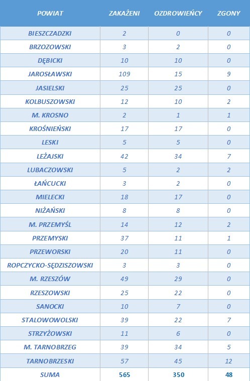 We wtorek Ministerstwo Zdrowia poinformowało, że w całym kraju badania laboratoryjne potwierdziły koronawirusa u kolejnych 300 osób, zmarło także 16 kolejnych. Wśród nich jest jedna osoba z Podkarpacia – to 93-letnia kobieta z powiatu jarosławskiego.