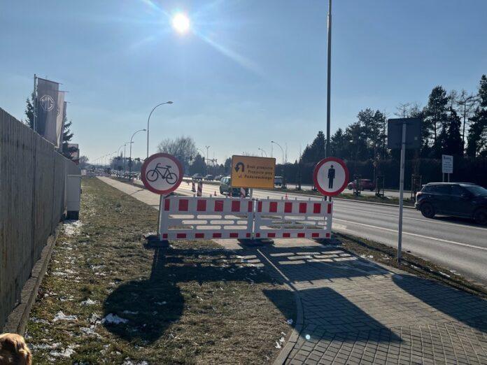 Nowe, tymczasowe przejście zostanie wyznaczone kilkadziesiąt metrów od ul. Powstańców Listopadowych, w stronę salonu firmy Ford. Zostanie przy nim też dodatkowo utwardzone dojście do jezdni.