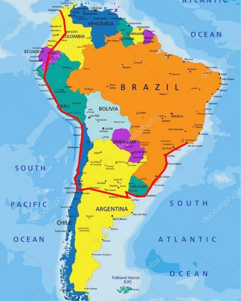 Do przemierzenia ma 60 tys. kilometrów i 55 krajów i planuje ten cel osiągnąć w trzy lata. Aktualnie przemierza Amerykę Południową, a dokładnie przemieszcza się wybrzeżem Brazylii. Na swoim Facebooku podzielił się dalszym planem podróży. Zmierza teraz do Urugwaju, by następnie przebyć Argentynę i część Chile. Później będzie kierował się dalej na północ aż do Kartageny w Kolumbii.