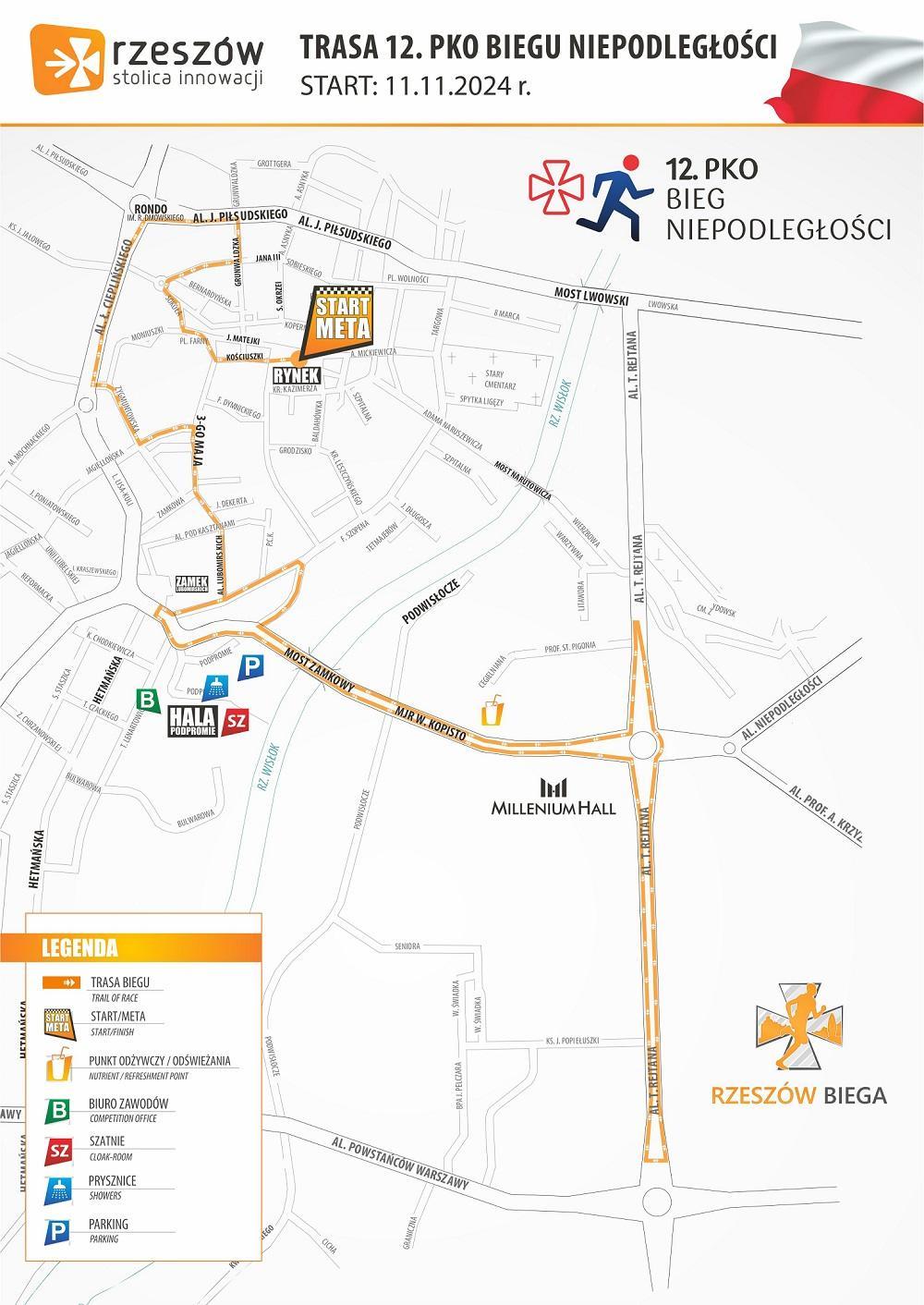 Bieg wystartuje 11 listopada punktualnie o godzinie 11.11 z rzeszowskiego Rynku. Na trasie o długości 10 kilometrów organizatorzy przewidują utrudnienia w ruchu do godziny 13.00.