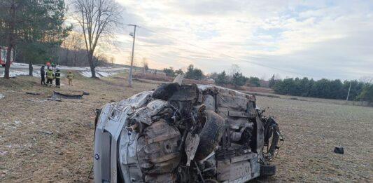 BMW wylądowało w rowie. 18-latek szczęśliwie przeżył groźny wypadek