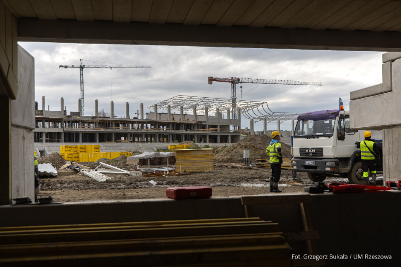 Jak przekazał prezydent Rzeszowa Konrad Fijołek wykonano już ponad 50 procent wszystkich robót budowlanych. Zakończono już montaż słupów konstrukcji nośnej i trybun, powstały betonowe płyty posadzek oraz ściany nośne na wszystkich kondygnacjach. Trwa montaż konstrukcji stalowej dachu oraz budowa zaplecza sportowego.