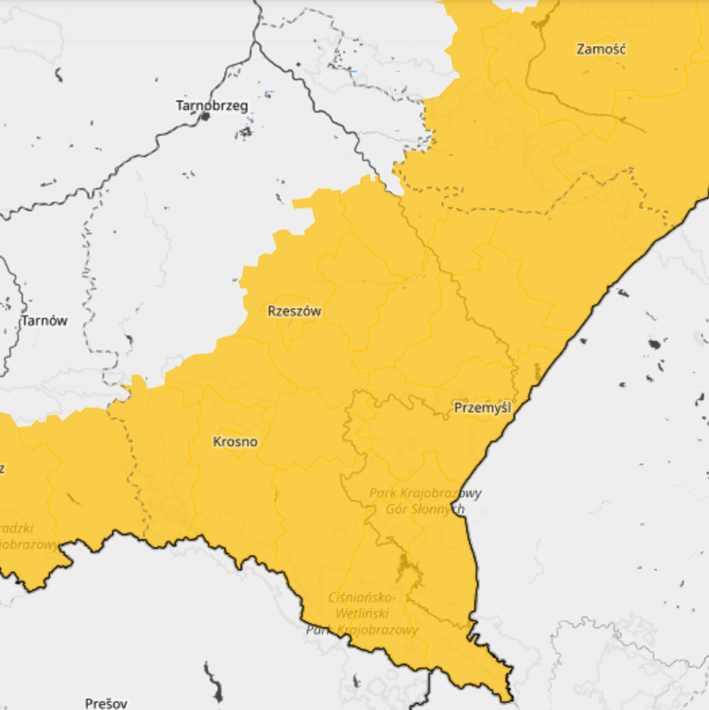 Póki co najbardziej zagrożone burzową aurą są miasta Krosno, Przemyśl i Rzeszów, a także powiaty: bieszczadzki, brzozowski, jarosławski, jasielski, krośnieński, leski, leżajski, łańcucki, przemyski, przeworski, rzeszowski, sanocki i strzyżowski.