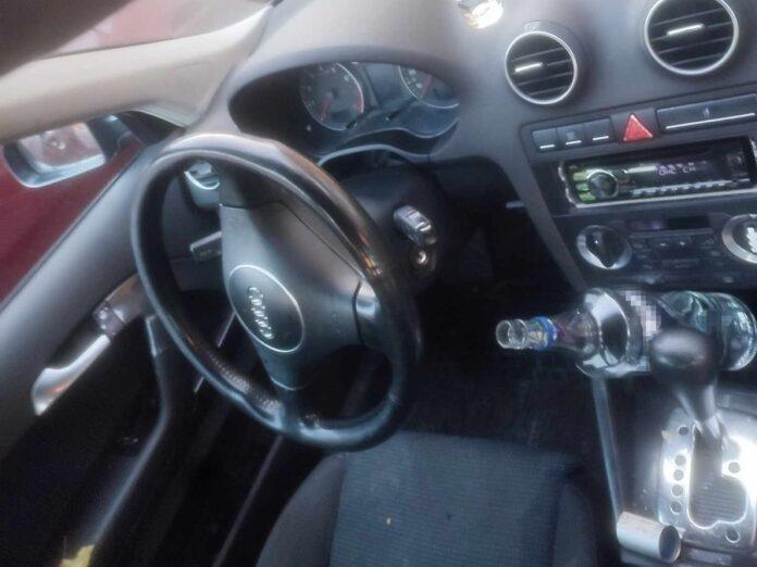 Mundurowym szybko udało się namierzyć winowajcę. We wnętrzu zatrzymanego audi znajdowało się dwóch nietrzeźwych mężczyzn mężczyzn. Obok dźwigni zmiany biegów była również otwarta butelka alkoholu.