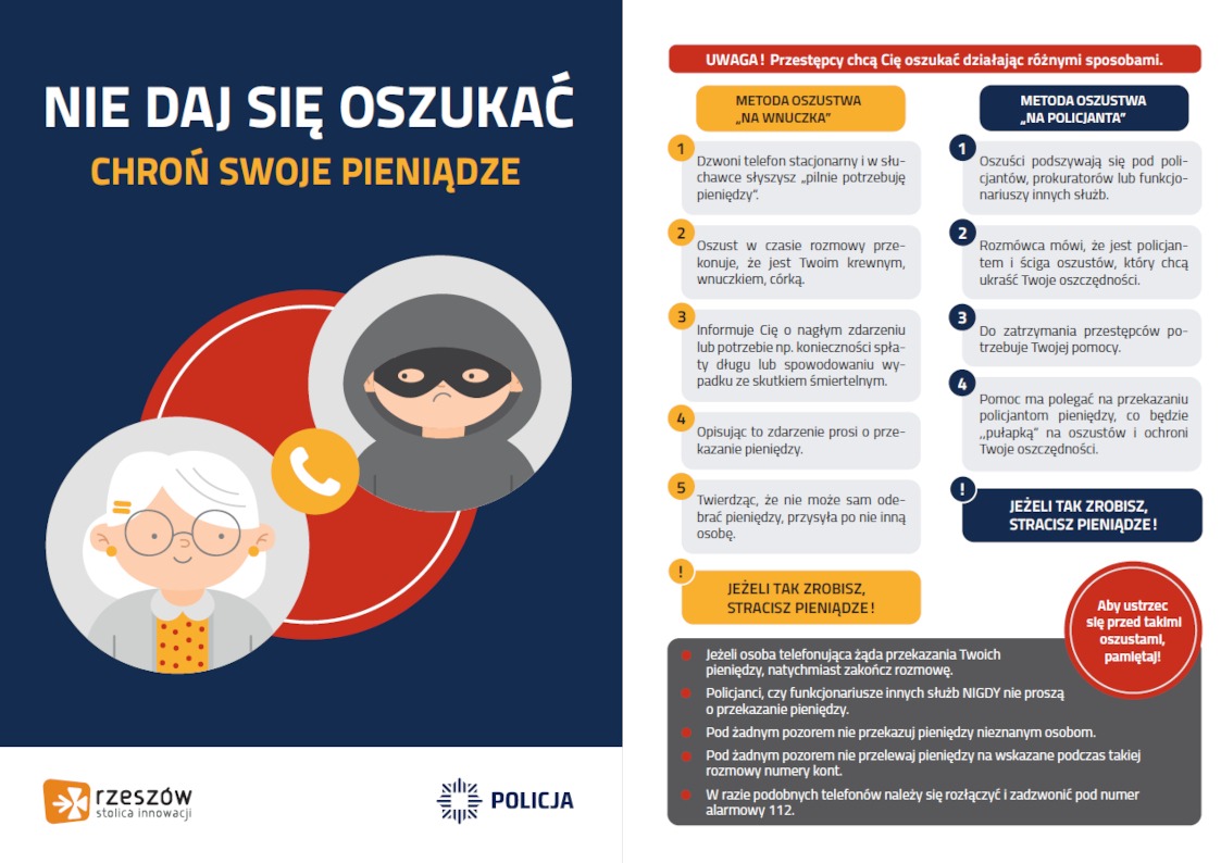 Rzeszowscy policjanci apelują o zachowanie ostrożności, zwłaszcza w stosunku do obcych osób, które do nas dzwonią. Pamiętajmy, że nie wiemy z kim rozmawiamy i czy ta osoba mówi nam prawdę. Stosujmy zasadę ograniczonego zaufania.