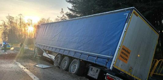 Ciężarówka w rowie na DK9. Poważne utrudnienia między Kolbuszową a Rzeszowem [ZDJĘCIA]