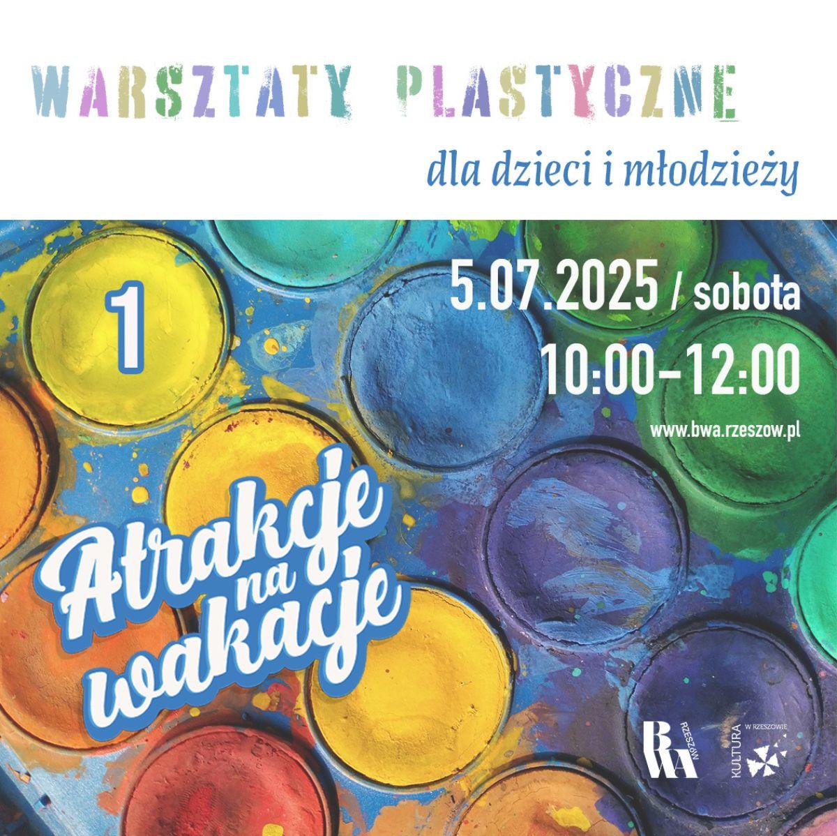 Ciekawą propozycją dla dzieci i młodzieży będą też z pewnością warsztaty plastyczne, które odbędą się w sobotę godzinach 10:00 – 12:00 w Biurze Wystaw Artystycznych w Rzeszowie (przy ul. Jana II Sobieskiego 18). W trakcie pierwszych wakacyjnych zajęć, w planach jest wyjście poza mury BWA. Twórczą przestrzenią będzie park, a narzędziem kreda. Zajęcia są bezpłatne i nie trzeba się na nie zapisywać. Wszystkie materiały plastyczne będą dostępne na miejscu. Kolejne wakacyjne warsztaty plastyczne BWA odbędą się: 19 lipca, a także 2 i 30 sierpnia.