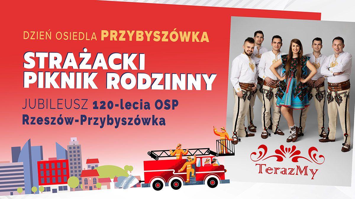 O godz. 15:00 wystartuje z kolei Strażacki Piknik Rodzinny w ramach Dnia Osiedla Przybyszówka. Wydarzenie będzie połączone z jubileuszem 120-lecia Ochotniczej Straży Pożarnej Rzeszów-Przybyszówka i odbędzie się na stadionie Klubu Sportowego Przybyszówka (przy ul. ks. Józefa Czyża 51). W programie imprezy będą m.in.: występy artystyczne (od 15:15), warsztaty i animacje dla dzieci (od 15:00), pokaz sprzętu strażackiego (od 16:00), zawody sportowe z nagrodami (od 17:00), koncert zespołu TerazMy (od 18:30), a także zabawa muzyczna pod chmurką z DJ-em, która potrwa od 20:00 do 23:00. Wstęp jest bezpłatny.