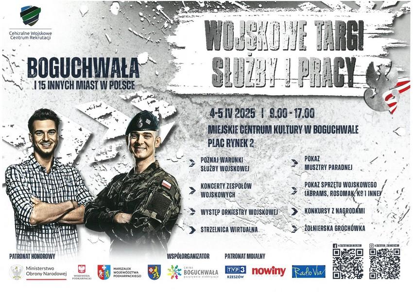Wkrótce w Boguchwale odbędą się II Wojskowe Targi Służby i Pracy, organizowane przez Ministerstwo Obrony Narodowej, Centralne Wojskowe Centrum Rekrutacji, Gminę Boguchwała i Miejskie Centrum Kultury w Boguchwale.