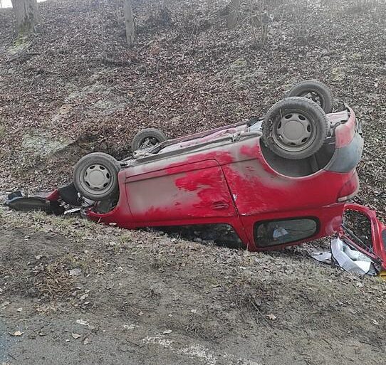 Poranne niskie temperatury nadal niebezpieczne. Dziś rano doszło do groźnie wyglądającego zdarzenia drogowego. 36-letnia kierująca toyotą straciła panowanie nad pojazdem. Samochód zjechał do rowu i dachował.