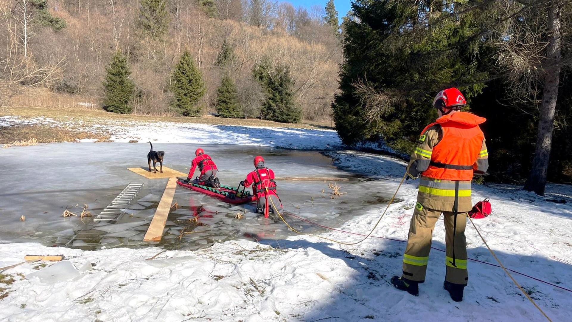 W czwartek, 26 lutego, służby ratunkowe otrzymały nietypowe zgłoszenie z miejscowości Dwernik w gminie Lutowiska. Na tafli lodu, na środku lokalnego stawu, utknął pies. Zwierzę nie było w stanie o własnych siłach wrócić na brzeg, a krucha powłoka lodu uniemożliwiała bezpieczne dotarcie do niego postronnym osobom.