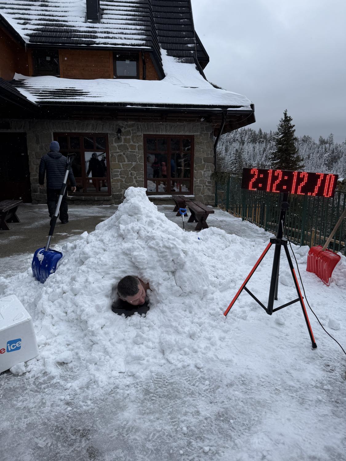 To jedna z najbardziej wymagających konkurencji związanych z ekspozycją na zimno. Próba polega na bezpośrednim kontakcie całego ciała ze śniegiem przez jak najdłuższy czas, bez izolacji i dodatkowej ochrony. Każda minuta to walka nie tylko z temperaturą, ale także z własnymi ograniczeniami fizycznymi i psychicznymi.