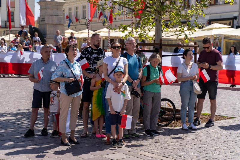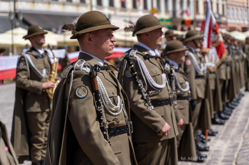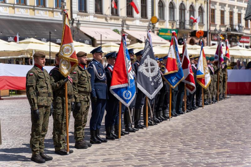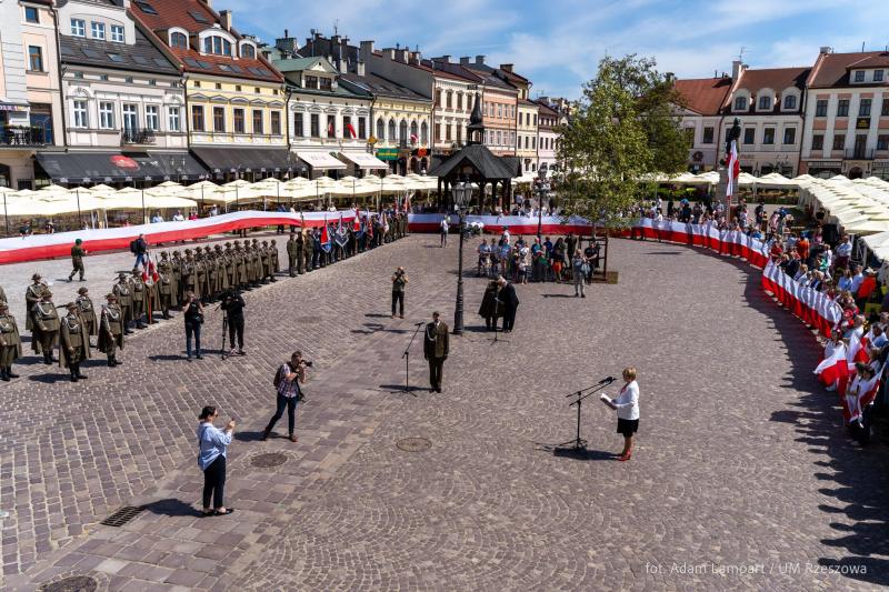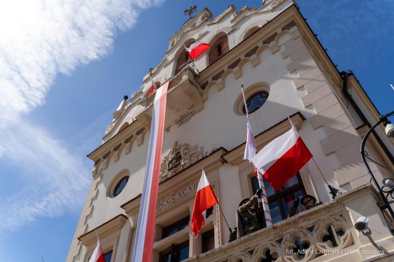 Podczas uroczystości na rzeszowskim Rynku zabrzmiały dźwięki Orkiestry Wojskowej z Rzeszowa, a centralnym momentem było oficjalne podniesienie flagi państwowej.