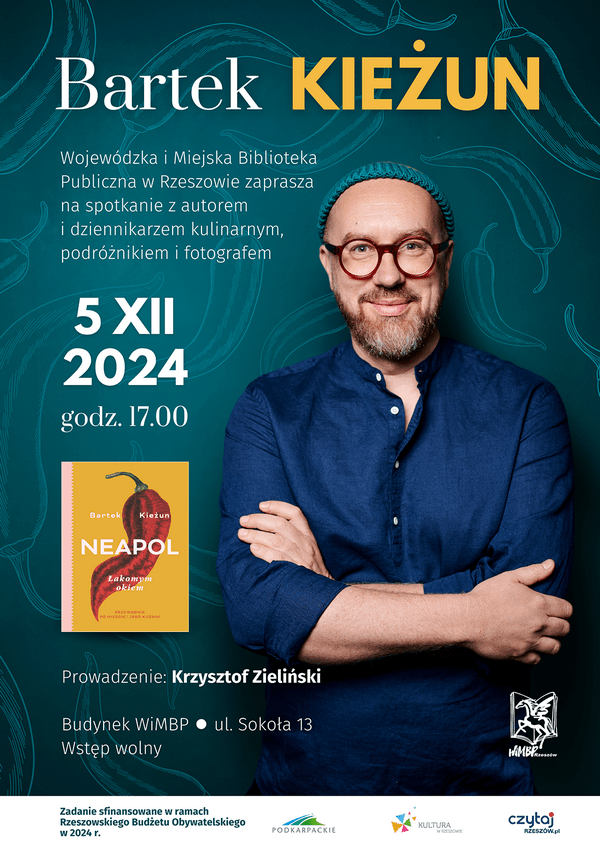 Spotkanie autorskie z Bartkiem Kieżunem odbędzie się 5 grudnia o godz. 17:00 w budynku Wojewódzkiej i Miejskiej Biblioteki Publicznej w Rzeszowie, na ul. Sokoła 13. Bilety na wydarzenie będą darmowe.