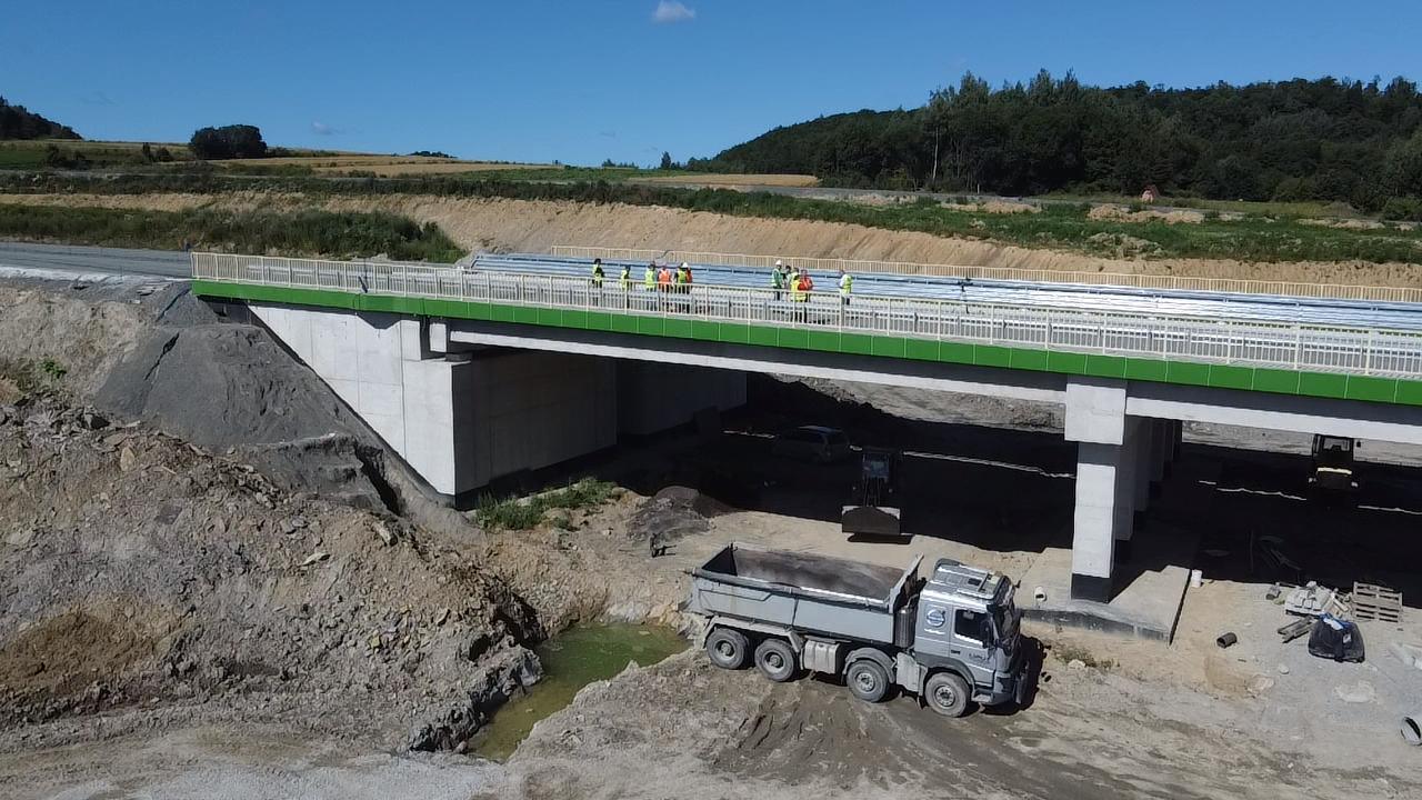 W ramach prac mostowych, na ośmiu obiektach układano belki typu T, a w sumie wykorzystano już 15 tys. m³ betonu konstrukcyjnego oraz 2100 ton stali zbrojeniowej. Powstały 268 prefabrykowane belki strunobetonowe oraz 157 skrzynek przepustowych. Trwają również prace przy izolacjach, dylatacjach i odprowadzeniu wody.