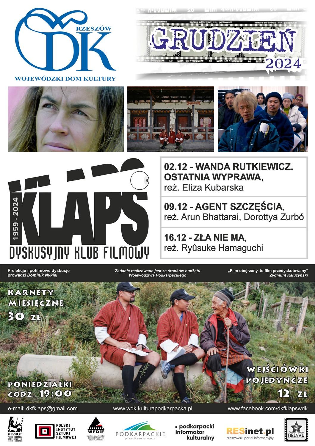 Dyskusyjny Klub Filmowy „Klaps” przygotował na najbliższe poniedziałki projekcje kilku ciekawych filmów. W repertuarze polski dokument biograficzny i japoński dreszczowiec.