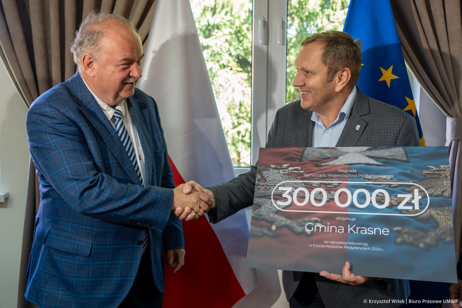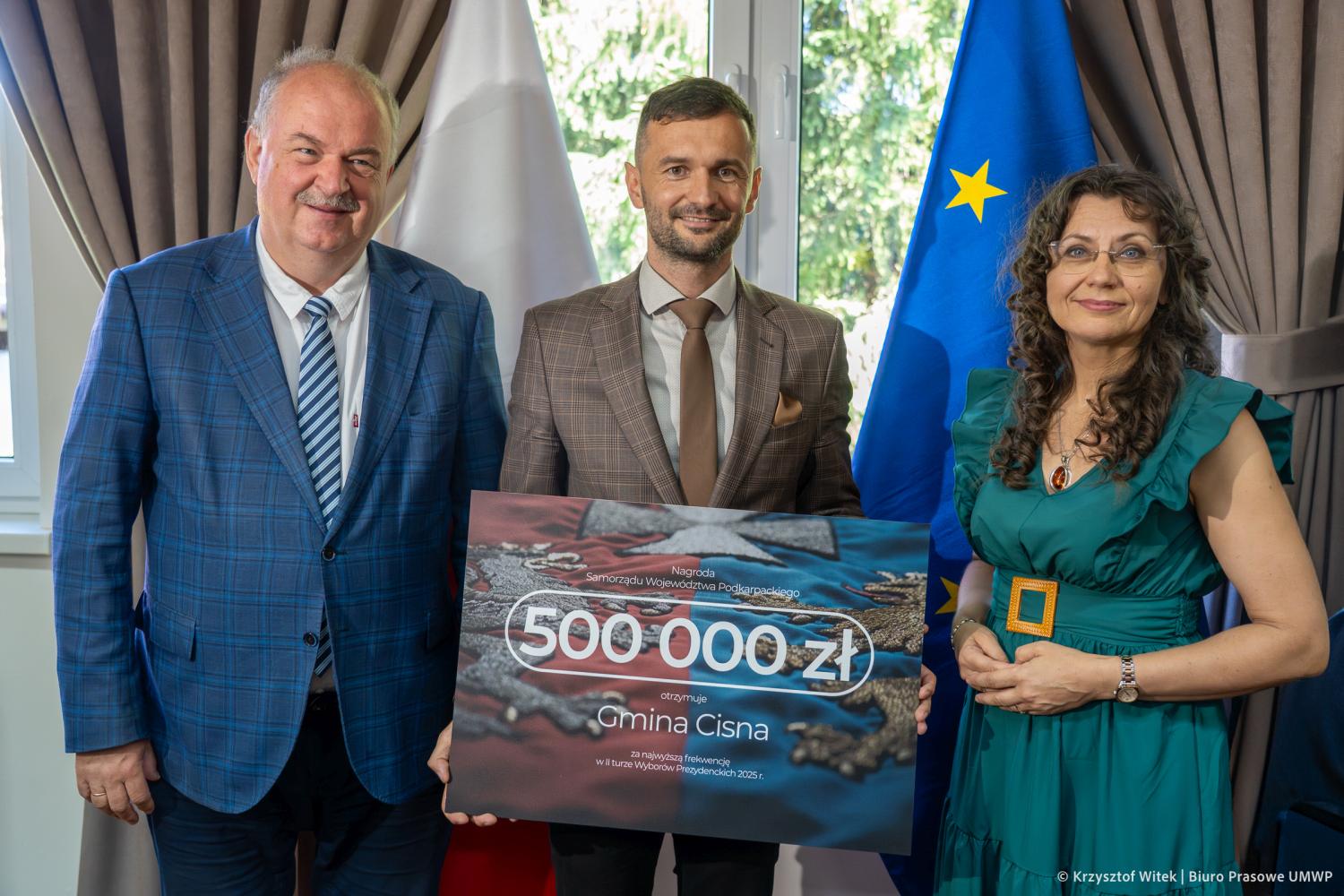 Trzy podkarpackie gminy, które w drugiej turze tegorocznych wyborów prezydenckich uzyskały najwyższą frekwencję, otrzymały nagrody finansowe od Zarządu Województwa Podkarpackiego. Kwoty wynosiły od 200 do aż 500 tys. zł.