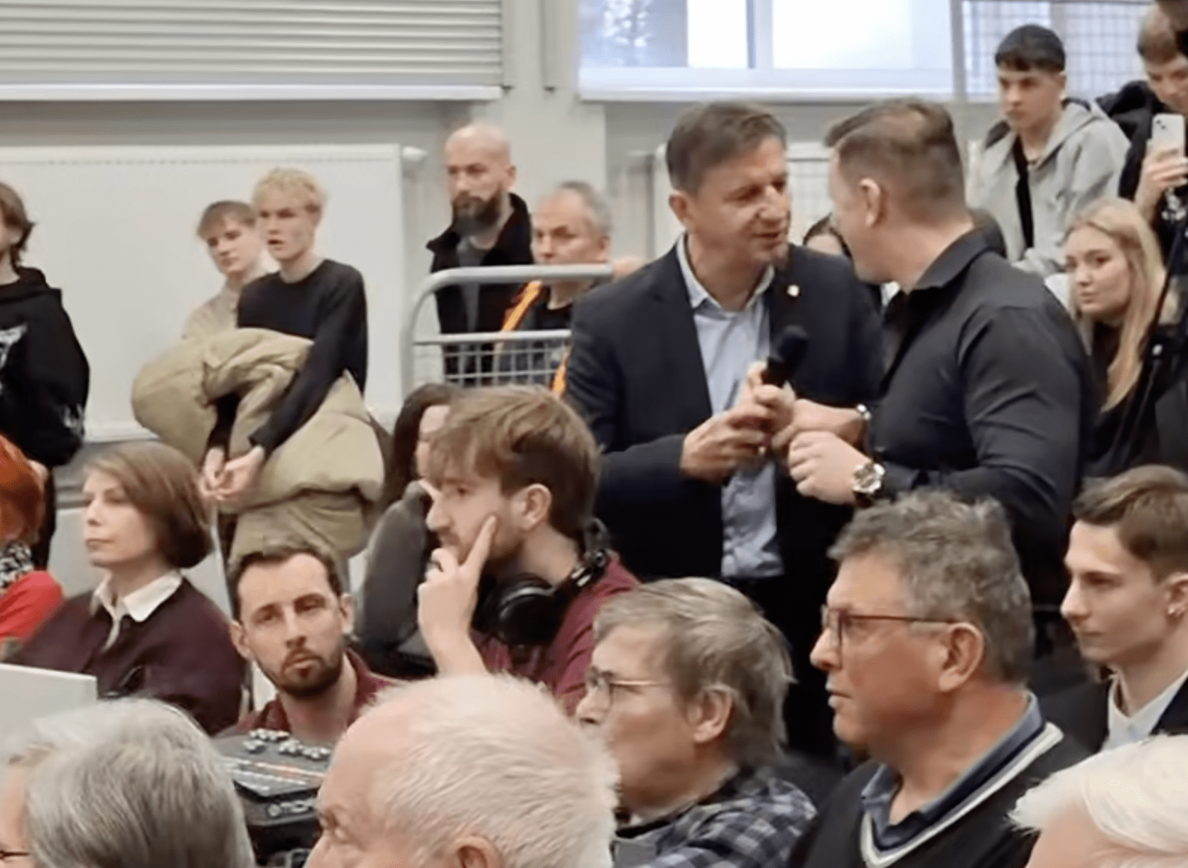 Zamiast standardowego pytania, doszło do ostrej wymiany zdań z ministrem. Ruszaj, reprezentujący formację Grzegorza Brauna, próbował przejąć inicjatywę w dyskusji, co doprowadziło do fizycznego zamieszania wokół mikrofonu. Padły mocne słowa, a interwencja obsługi spotkania była niezbędna, by przywrócić porządek i umożliwić dalszą rozmowę z zebranymi obywatelami.