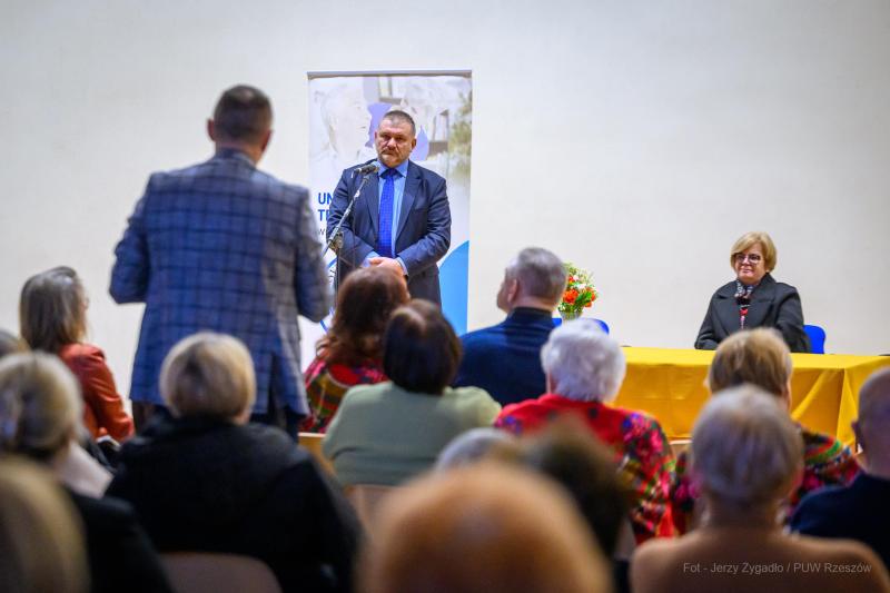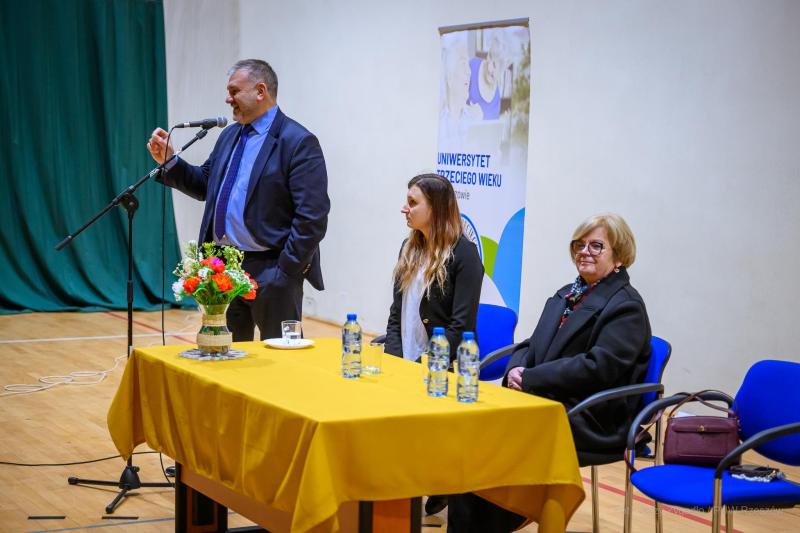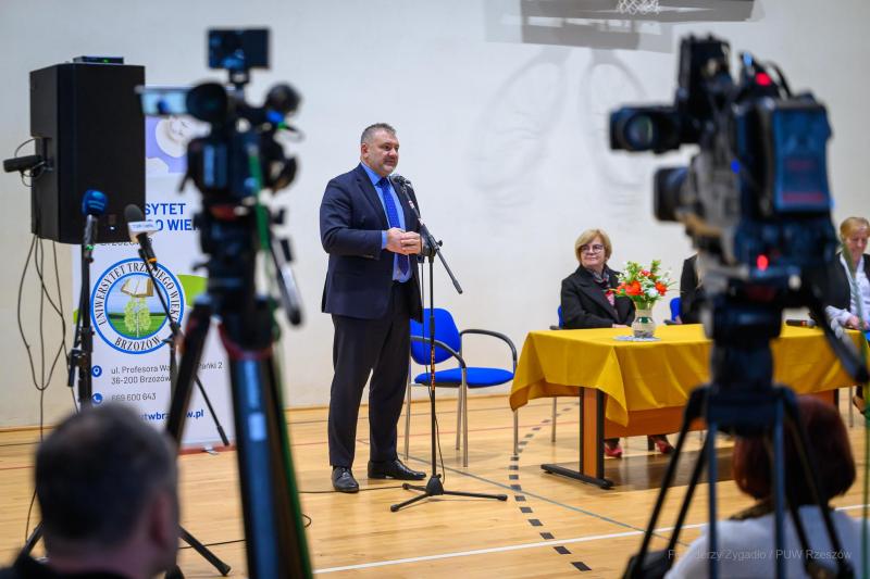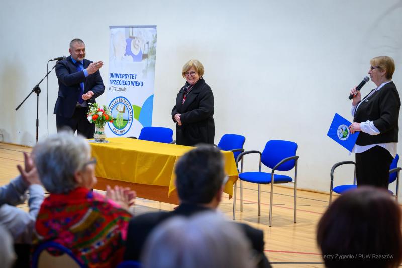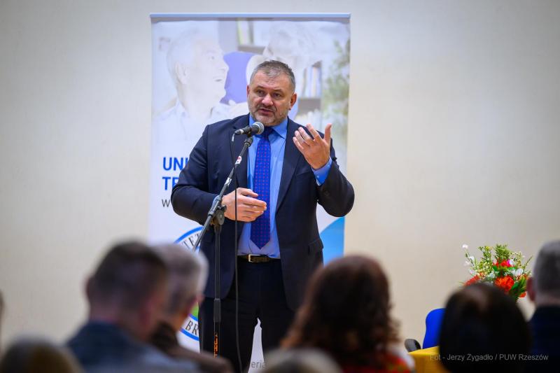 Kolejnym przystankiem na trasie ministra był Uniwersytet Trzeciego Wieku w Brzozowie. Tam atmosfera była znacznie spokojniejsza, a rozmowa koncentrowała się na ochronie osób starszych. Minister szczegółowo omówił założenia programu „Bezpieczny Senior”.