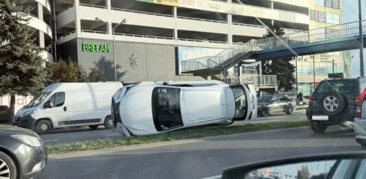 Groźna kolizja na al. Rejtana w Rzeszowie. Jeden z samochodów przewrócił się na bok [ZDJĘCIA]