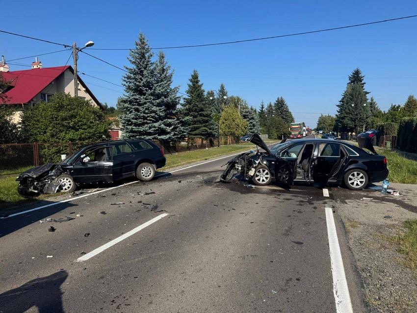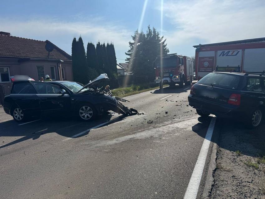 Na drodze wojewódzkiej nr 865 w Szówsku doszło do groźnego wypadku. Kierowca audi miał z niewiadomych przyczyn zjechać na przeciwległy pas ruchu, gdzie zderzył się z pojazdem tej samej marki.