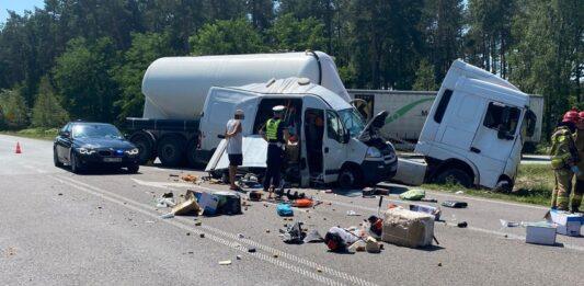 Groźnie wyglądający wypadek na mieleckiej obwodnicy. Bus zderzył się z cysterną