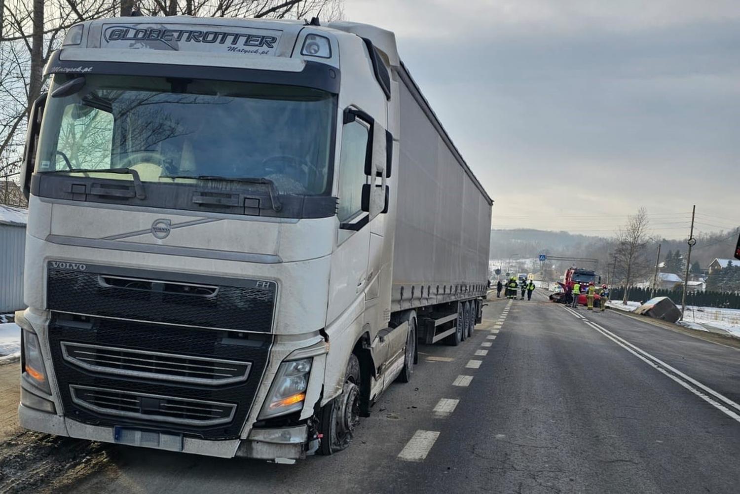 Czołowe zderzenie z ciężarówką