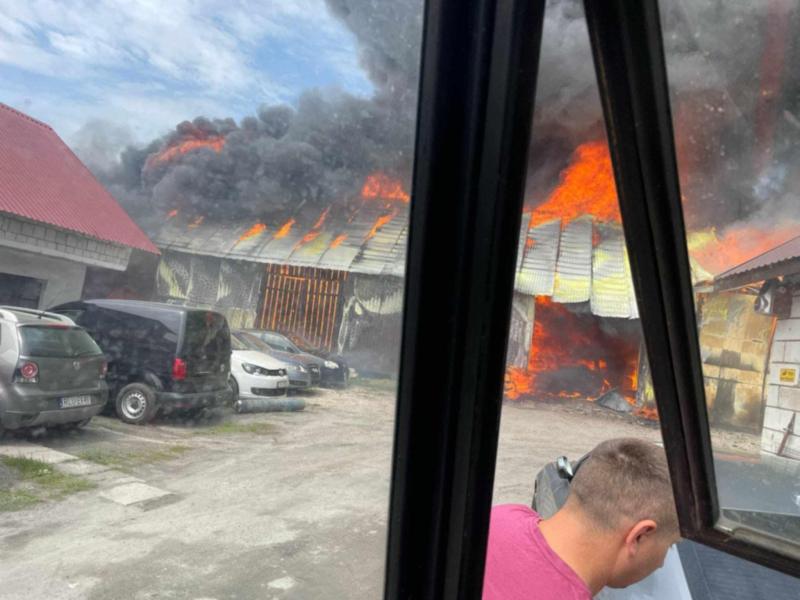 W czwartek, 22 maja, około godziny 11:20 wybuchł widoczny z wielu kilometrów pożar warsztatu samochodowego. Ogień objął cały budynek, kilka pojazdów i zagrażał sąsiednim zabudowaniom.