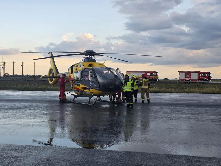 W sobotę doszło do groźnego wypadku na autostradzie A4. Kobieta miała stracić panowanie nad pojazdem, przelecieć nad barierami energochłonnymi i dachować. Na miejsce wezwano śmigłowiec LPR.