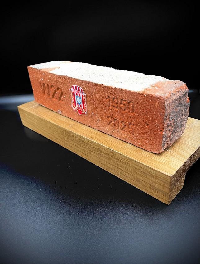 - Oryginalna cegła z W22 na podstawie dębowej z certyfikatem klubowym – 310 zł / szt.