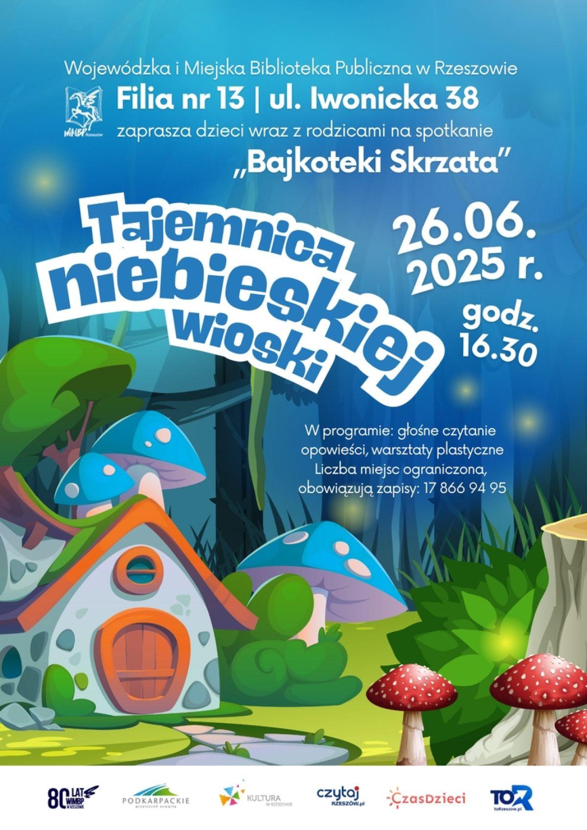 W czwartek o godz. 16:30 dzieci wraz z rodzicami zaprosi Wojewódzka i Miejska Biblioteka Publiczna w Rzeszowie. W filii nr 13 (przy ul. Iwonickiej 13) odbędzie się spotkanie „Bajkoteki Skrzata”. W programie wydarzenia pod hasłem „Tajemnica niebieskiej wioski” będzie głośne czytanie oraz warsztaty plastyczne. Liczba miejsc ograniczona. Obowiązują zapisy pod numerem telefonu: 17 866 94 95.