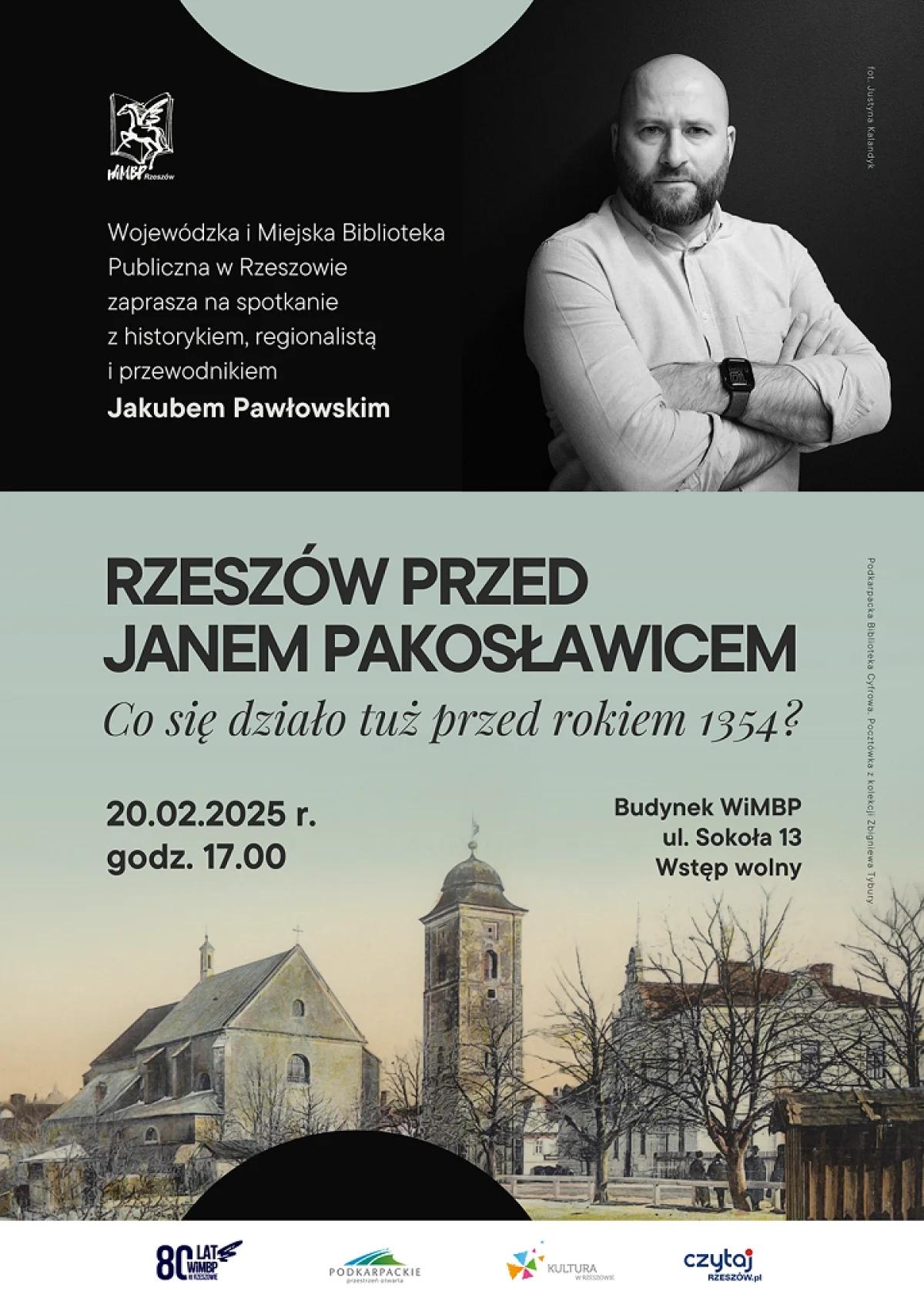 Także w czwartek o godz. 17:00 w Wojewódzkiej i Miejskiej Bibliotece Publicznej w Rzeszowie (przy ul. Sokoła 13) odbędzie się spotkanie z Jakubem Pawłowskim – znanym historykiem, regionalistą i przewodnikiem. Tematem spotkania będą słynni rzeszowianki i rzeszowianie. Wśród nich byli doradcy królewscy, dyplomaci, najwyżsi duchowni i dowódcy wojskowi, piewcy kultury, artyści i plastycy, filmowcy, naukowcy, a nawet współpracownicy Einsteina, politycy, kupcy i wytrawni rzemieślnicy.