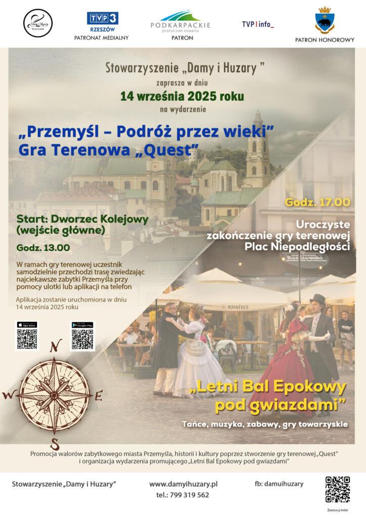 Ciekawie będzie także w niedzielę w Przemyślu, gdzie odbędzie się wydarzenie zorganizowane przez Stowarzyszenie „Damy i Huzary”. O godz. 13:00 na Dworcu Kolejowym rozpocznie się tam gra terenowa „Przemyśl – Podróż przez wieki”. Na godz. 17:00 na Placu Niepodległości odbędzie się uroczyste zakończenie gry w formie „Letniego Balu Epokowego pod gwiazdami”. Będą tańce, muzyka, gry i zabawy.