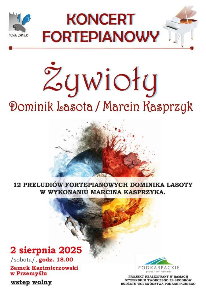Muzyka będzie pełnić główną rolę także podczas koncertu fortepianowego „Żywioły” w Sali widowiskowej Zamku Kazimierzowskiego w Przemyślu. W sobotę (2 sierpnia) od godz. 18:00 usłyszycie tam 12 preludiów Dominika Lasoty w wykonaniu Marcina Kasprzyka. Wstęp wolny.