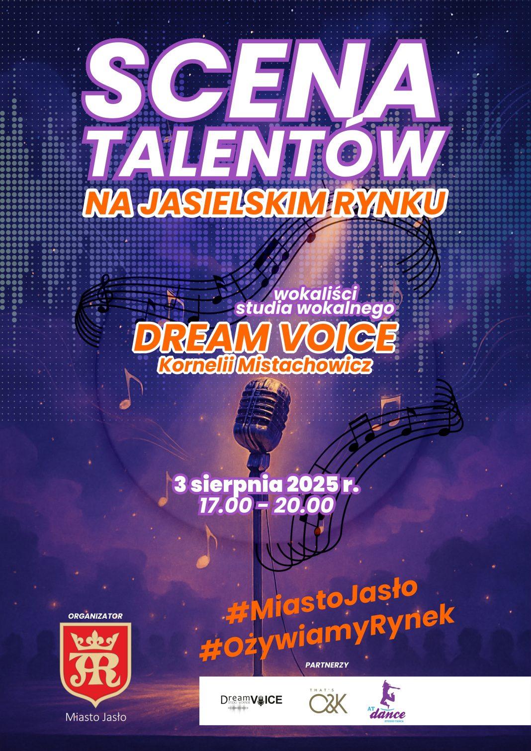 Muzyka, ale w nieco innym klimacie będzie mogła Wam towarzyszyć w Jaśle. W niedzielę (3 sierpnia) na Rynku w godzinach 17:00 – 20:00 odbędzie się występ wokalistów ze Studia Dream Voice w ramach jasielskiej „Sceny Talentów”. W niedzielne popołudnie na płycie jasielskiego rynku gościnnie wystąpią również tancerze ze Studia Tańca AT Dance oraz zespół That’s O&K.