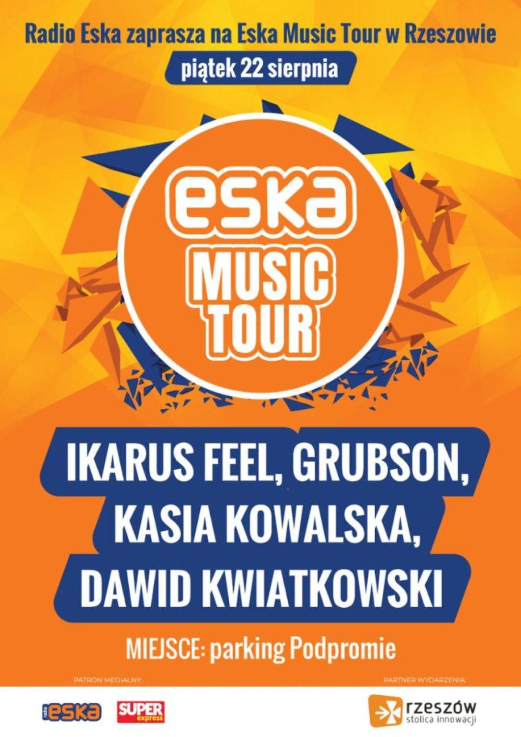 Już w piątek na parkingu przy Hali Podpromie odbędzie się wielkie muzyczne wydarzenie, czyli Eska Music Tour. Wydarzenie rozpocznie się już o godz. 17:00, a na scenie aż to późnych godzin wieczornych wystąpią wielkie gwiazdy polskiej sceny muzycznej. Będą to: Ikarus Feel, Grubson, Kasia Kowalska i Dawid Kwiatkowski. Będą więc pop-rockowe rytmy, hip-hop i R&B. W festiwalowym miasteczku znajdziecie z kolei wiele atrakcji z licznymi konkursami, gry i zabawy, wesołe miasteczko, strefę gastronomiczną, a nawet loty helikopterem.