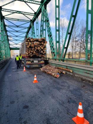 Zgłoszenie o zagrożeniu wpłynęło do dyżurnego jednostki w Przeworsku w poniedziałek, tuż po godzinie 13:00. Na miejsce natychmiast skierowano patrol drogówki, który potwierdził, że z pojazdu ciężarowego marki Renault wraz z przyczepą spadła część przewożonego ładunku. Drewno nie tylko zatarasowało przejazd, ale również uszkodziło metalowe elementy konstrukcyjne mostu.