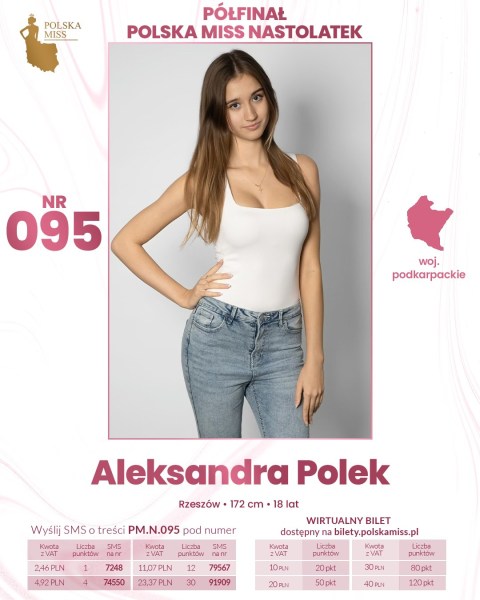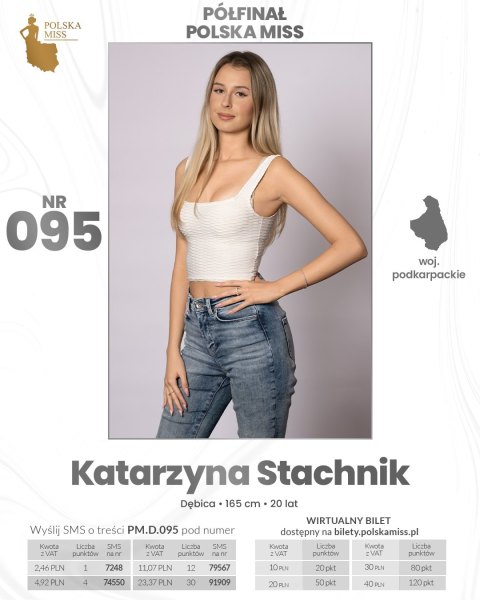 W kategorii Polska Miss 2025 do półfinału awansowało 140 kandydatek z wszystkich 16 województw. Podkarpacie reprezentuje w konkursie osiem pań – 22-letnia Kornelia Czelny z Przemyśla, 25-letnia Weronika Kozdra ze Stalowej Woli, 19-letnia Roksana Lorenc z Sanoka, 25-letnia Martyna Nguyen i 24-letnia Kinga Pałka z Jarosławia, 19-letnia Paulina Półchłopek z Krosna, 20-letnia Katarzyna Stachnik z Dębicy, a także 21-letnia Nikola Wilk z Motycz Poduchownych.