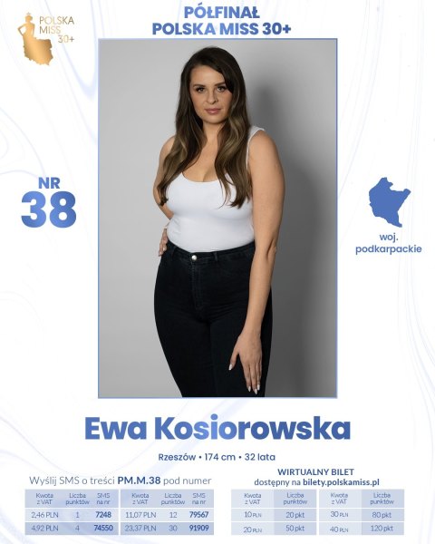 Dwie podkarpackie kandydatki dostały się z kolei do półfinału w kategorii Polska Miss 30+ 2025. W gronie 69 pań są to: 37-letnia Joanna Blicharz z Kolbuszowej oraz 32-letnia Ewa Kosiorowska z Rzeszowa.
