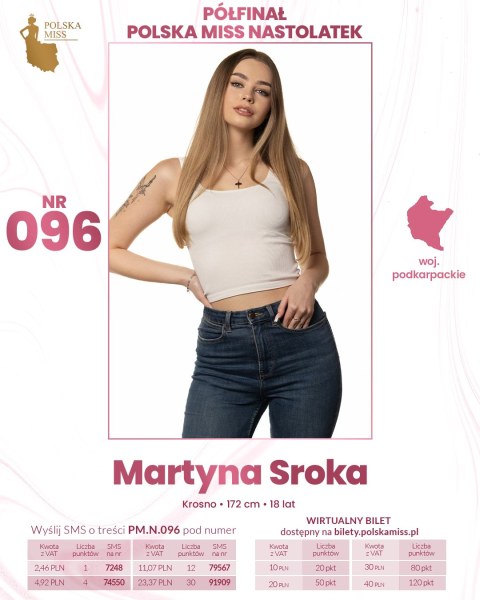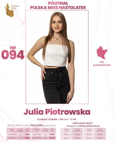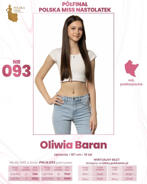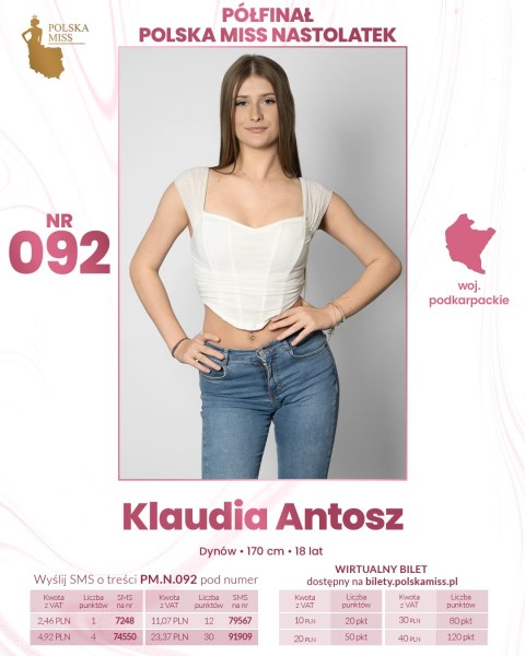 Wśród 150 kandydatek do tytułu Polska Miss Nastolatek 2025 jest sześć kandydatek z Podkarpacia. Są to: 18-letnia Klaudia Antosz z Dynowa, 16-letnia Oliwia Baran z Łętowni, 17-letnia Julia Piotrowska z Pustkowa-Osiedla, 18-letnia Aleksandra Polek z Rzeszowa, 18-letnia Martyna Sroka z Krosna i 17-letnia Dominika Urban z Hyżnego.