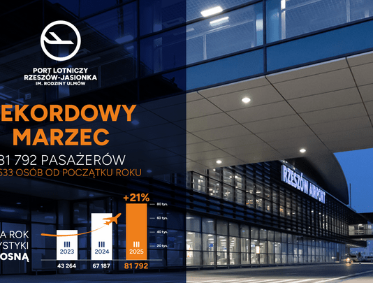 Lotnisko Rzeszów-Jasionka im. Rodziny Ulmów zanotowało najlepszy miesiąc w swojej historii. W kwietniu 2025 r. podkarpacki port lotniczy obsłużył 94 198 pasażerów, czyli o...