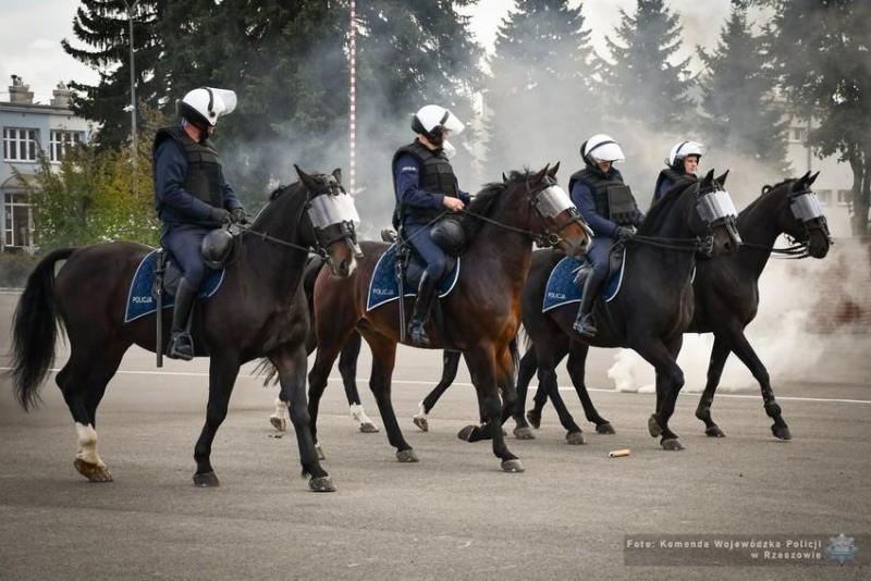 Co ciekawe, trzydniowy egzamin składał się m.in. z elementów ujeżdżenia na parkurze, na którym konie i jeźdźcy pokonywali ustawione przeszkody. Sprawdzone zostały także umiejętności wierzchowców podczas współdziałania z pododdziałem zwartym, który tworzyli funkcjonariusze Oddziału Prewencji Policji w Rzeszowie. Dodatkowo, na policyjnym torze przeszkód konie ćwiczyły ogólną sprawność.