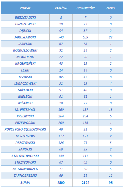 Liczba osób zarażonych koronawirusem na Podkarpaciu wzrosła do 2800. W czwartek sanepid poinformował także, że w naszym województwie wyzdrowiało kolejne 40 osób, to mieszkańcy 13 powiatów. “Ozdrowieńców” jest już 2124.