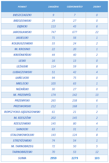 Liczba osób zarażonych koronawirsem na Podkarpaciu wzrosło do 2918. Sanepid poinformował także, że kolejne 60 osób wyzdrowiało, to mieszkańcy 11 powiatów województwa.