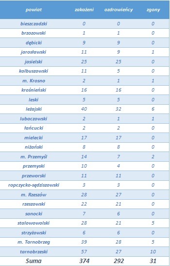 Dotychczas w naszym województwie badania laboratoryjne potwierdziły koronawirusa u 374 osób, 292 wyzdrowiały, z powodu zachorowania na COVID-19 zmarło 31 osób.