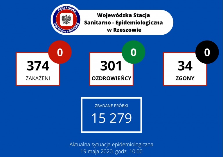 W naszym regionie koronawirusa potwierdzono dotychczas u 374 osób, z czego 301 już wyzdrowiało, sanepid odnotował 34 zgony. W laboratorium Wojewódzkiej Stacji Sanitarno-Epidemiologiczna w Rzeszowie do tej pory przeprowadzono 15 279 testów.