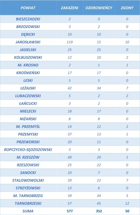 W sumie na Podkarpaciu potwierdzono już 577 przypadków zakażenia koronawirusem, 50 zmarło. W środę podkarpacki sanepid podał również, że w naszym województwie wyzdrowiały kolejne dwie osoby: starsza kobieta i nastolatka z powiatu przemyskiego. Wszystkich “ozdrowieńców” jest już 352.